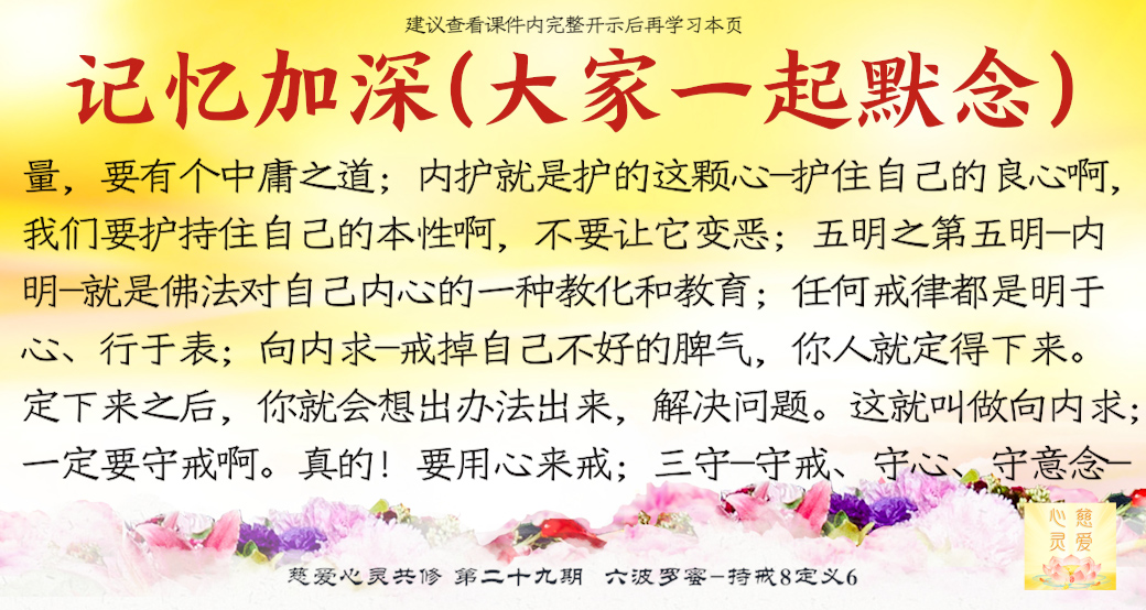 怎么样才能让自己的本性一直延续下去而不移动呢?。。。第二,要在心中觉得自己没有守戒,这叫戒法自然。不抽烟的人难道要天天去想自己今天没有抽烟吗?你不是一个打妄语的人,难道你要想自己今天没有打妄语吗?今天你没有偷东西,你是一个好人,你本来就已经守戒了,你已经是戒法自然,你已经到了不用去想自己已经守戒了,其实你还是在守戒。学佛人心中要有一道防火墙,要经常检验自己的防火墙是否有效果,这道防火墙就叫境界。经常检验自己的境界高不高,就像电脑经常要更新软件一样,学佛人也应循此法,才能因戒生慧。