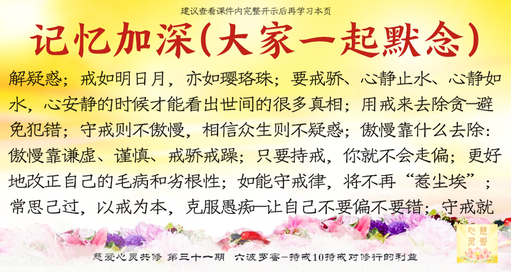 守戒的人才会修成功。在生活上守戒,家庭平安;在工作上守戒,工作顺利。